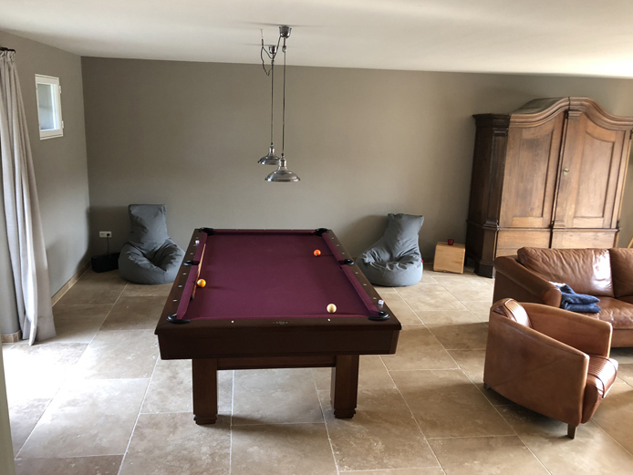 Das Haupthaus bietet viel Platz und Komfort: drei Schlafzimmer und Bäder, gesellschaftliche Diele, großes Wohnzimmer mit Billardtisch sowie mehrere Räume zum Verweilen.